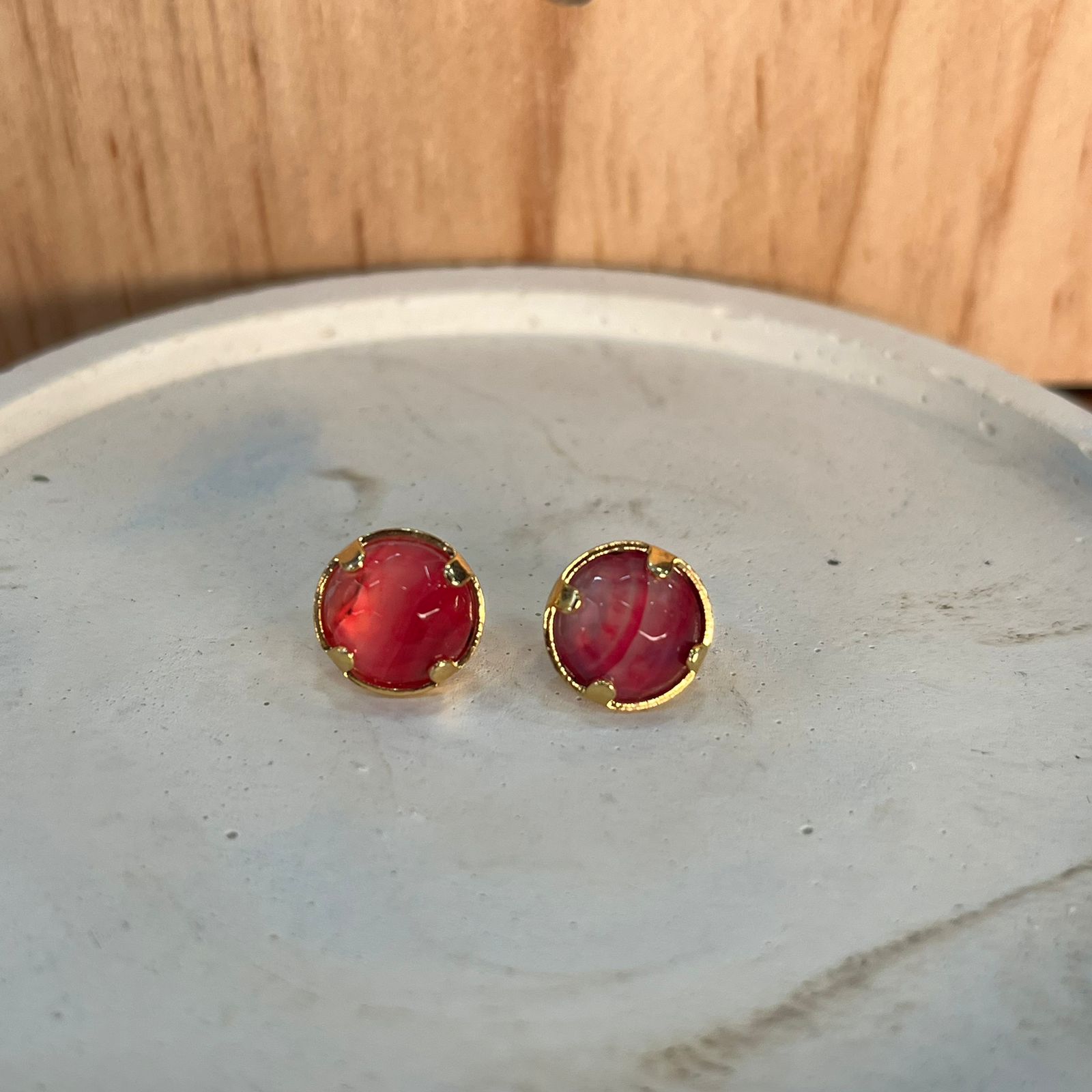 Brinco folheado com pedra Natural. (Multifacetado)