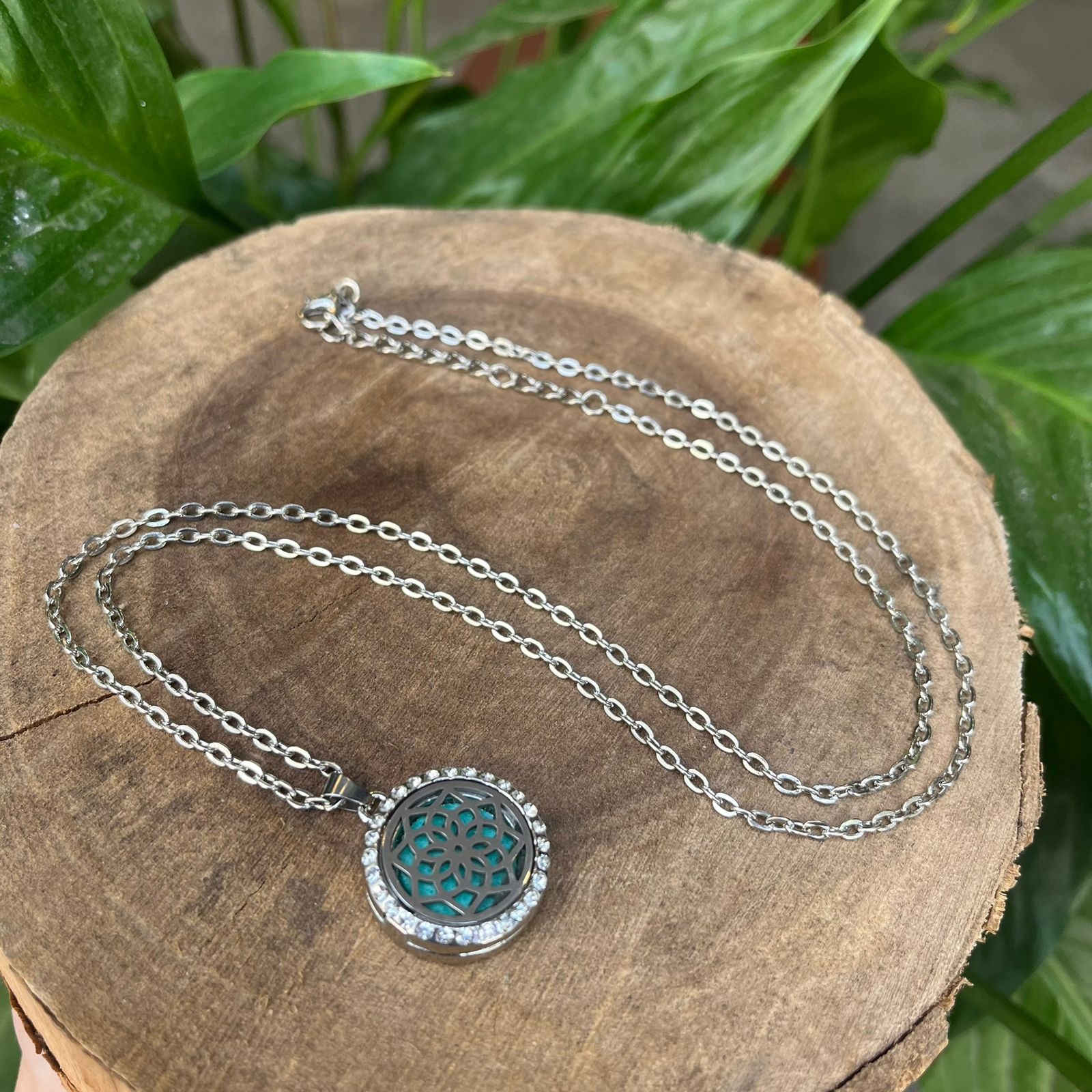O colar é um acessório para colocar o óleo essencial da sua preferência e fazer a aromaterapia.