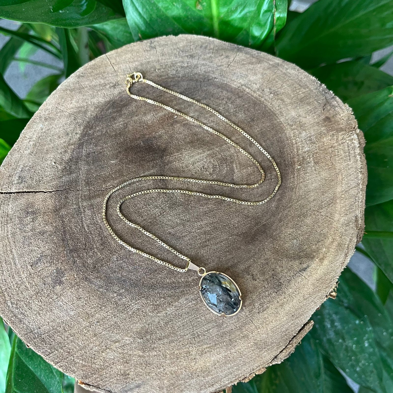 Colar folheado com pedra natural.