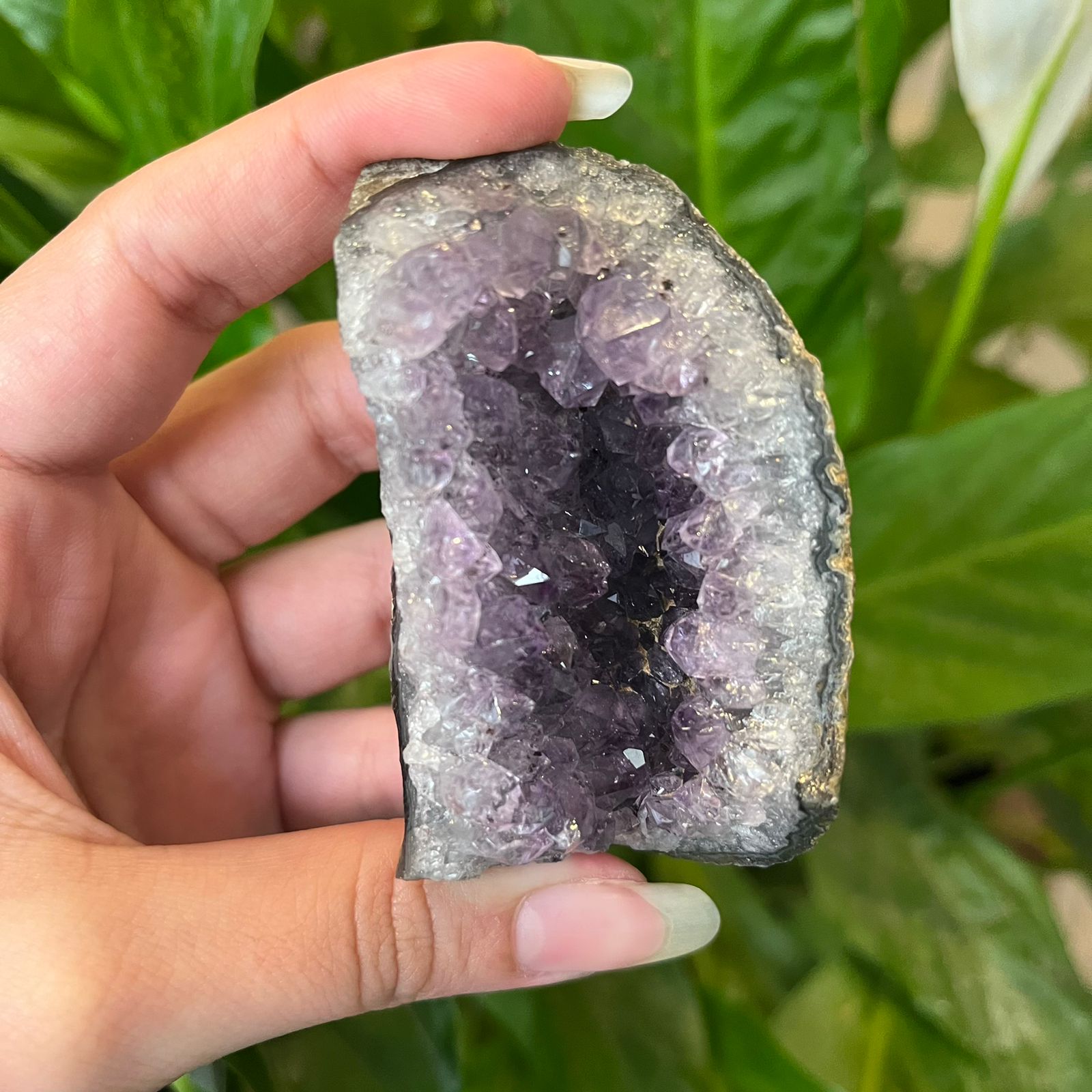 A Ametista é uma pedra de transmutação de pensamentos e energia, transforma todas as energias negativas em energias positivas.Também é a pedra da espiritualidade e da intuição. É o cristal de maior eficácia na meditação, facilitando a conexão com seu Eu Superior. Transmite paz, espiritualidade, elimina o estresse e inspira a cura e intuição.