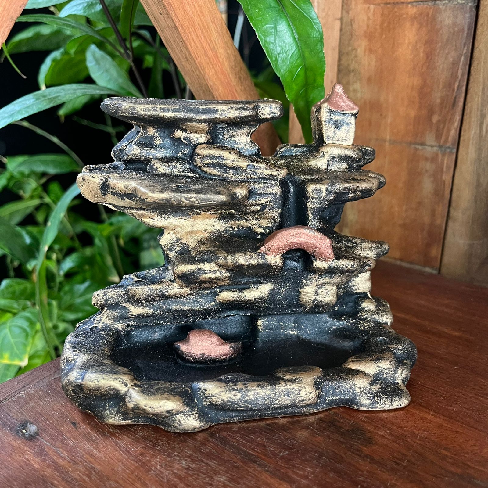 O Incencário Cascata além de decorar o seu ambiente, oferece um visual fantástico. Compatível com incensos backflow (cascata de fumaça) o incensário cria um fluxo de fumaça que desce pela peça.