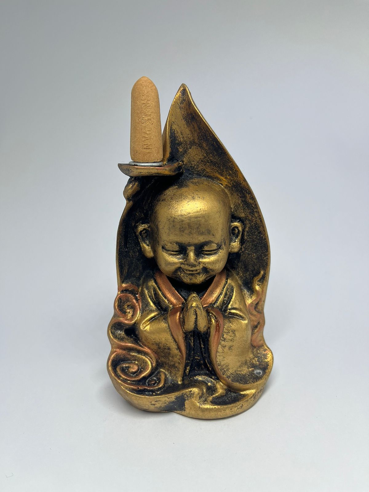 Incensário Monge Sorrindo feito em Resina.