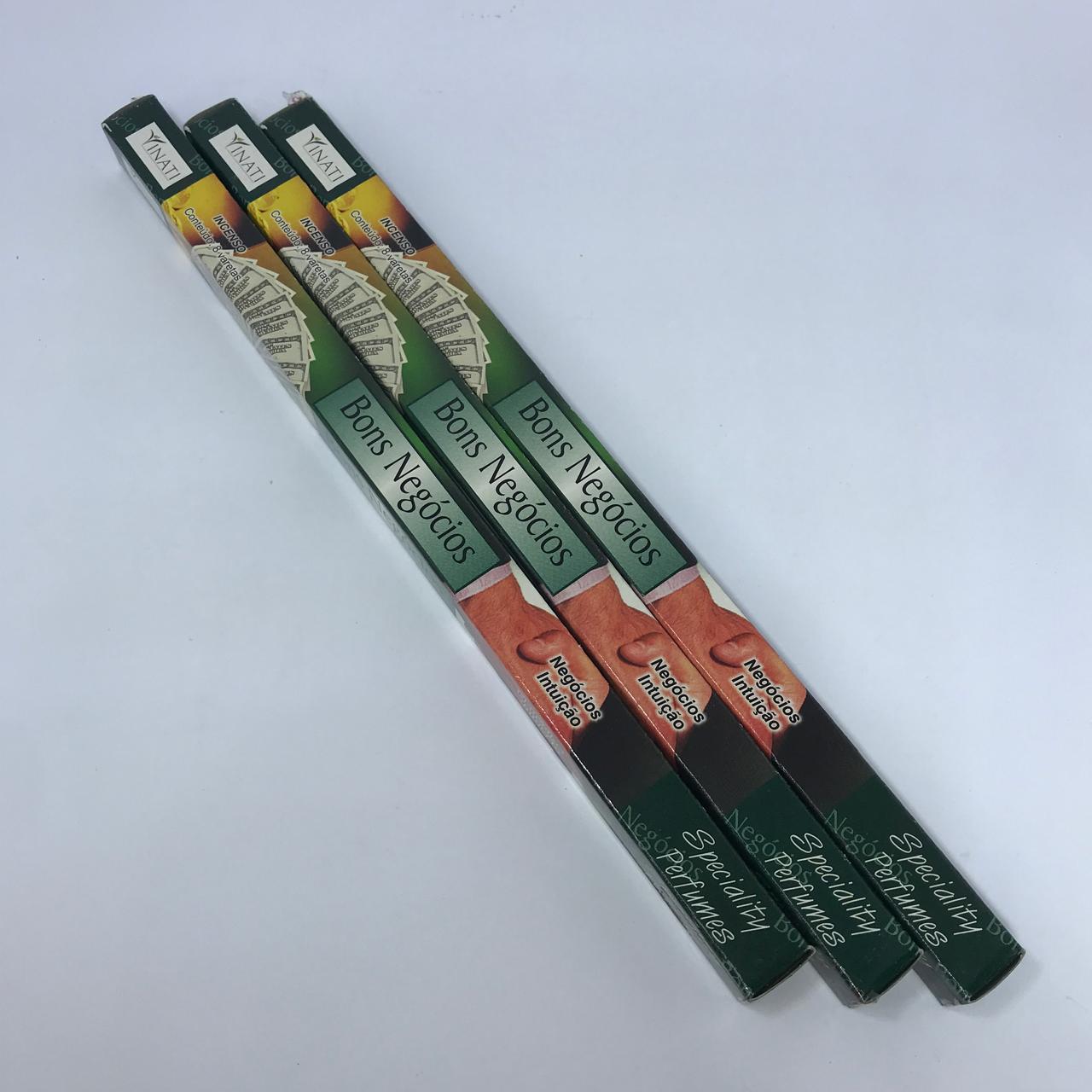 Incenso Bons Negócios traz a energia "Negociação e Intuição".
