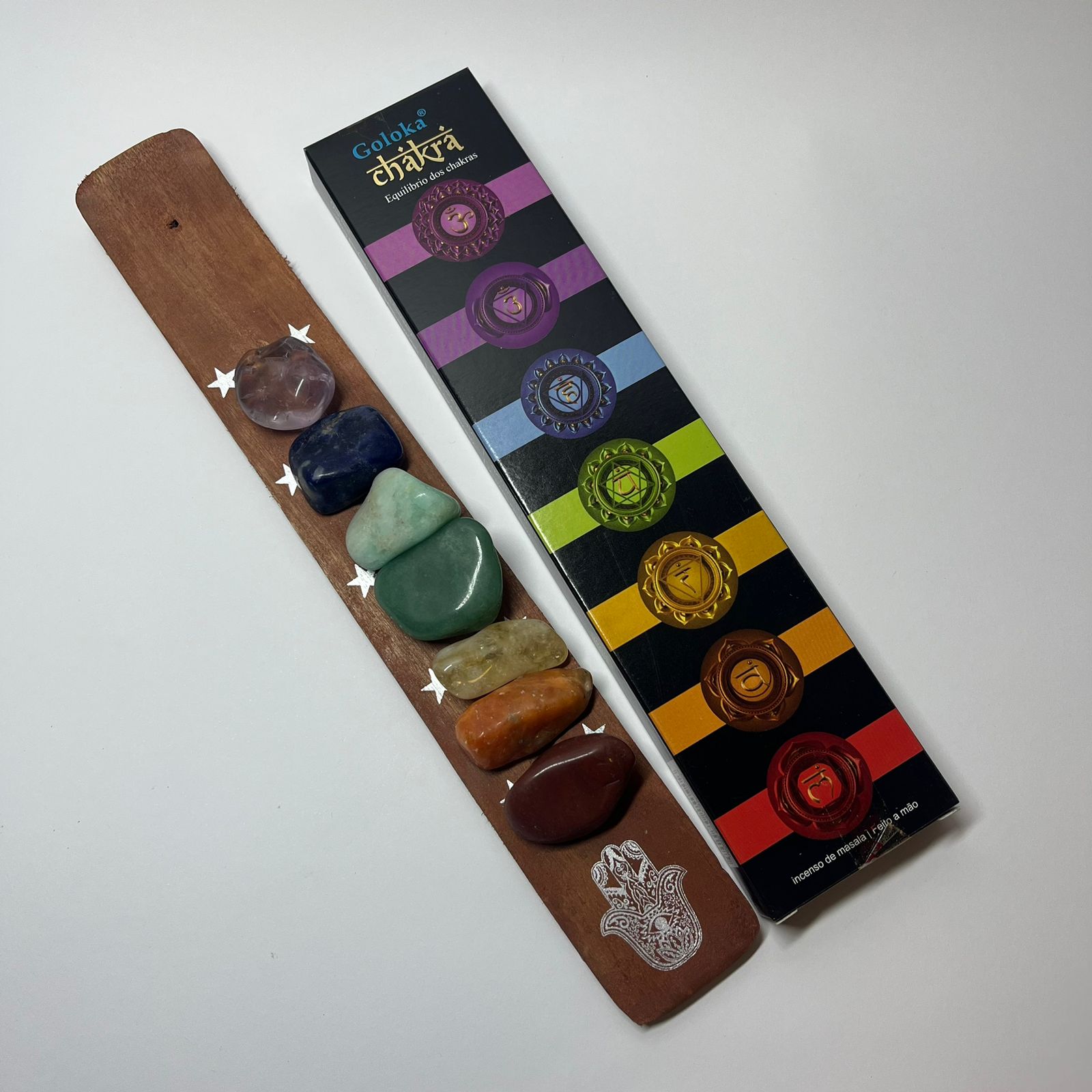 - Um Incenso de Massala 7 Chakras ( traz calma, harmonia e equilíbrio para a mente, a alma e o corpo por auxiliar no equilíbrio dos Chakras).