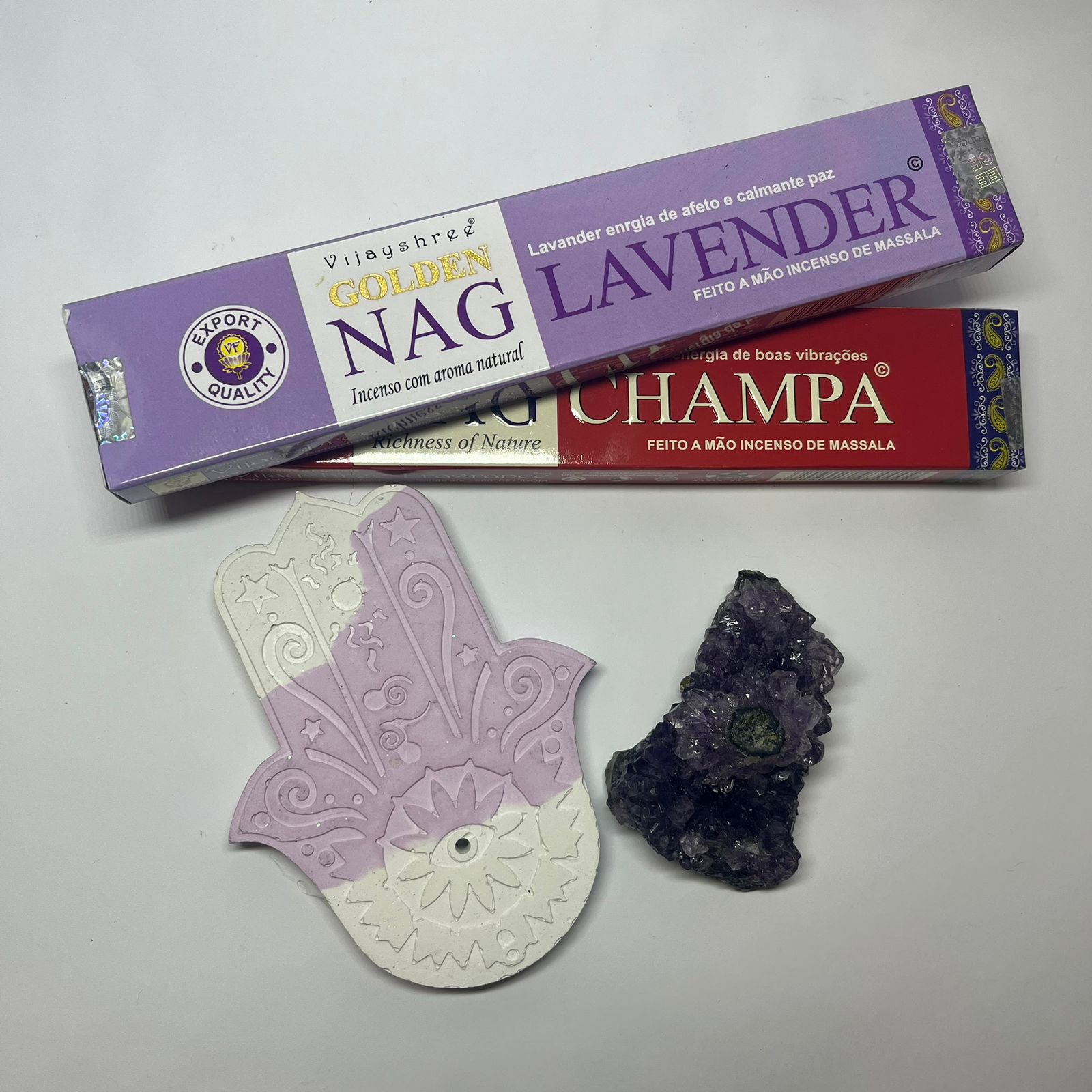 - Dois Incensos de Massala: Lavanda (tranquilidade e calma) e Champa (boas energias)