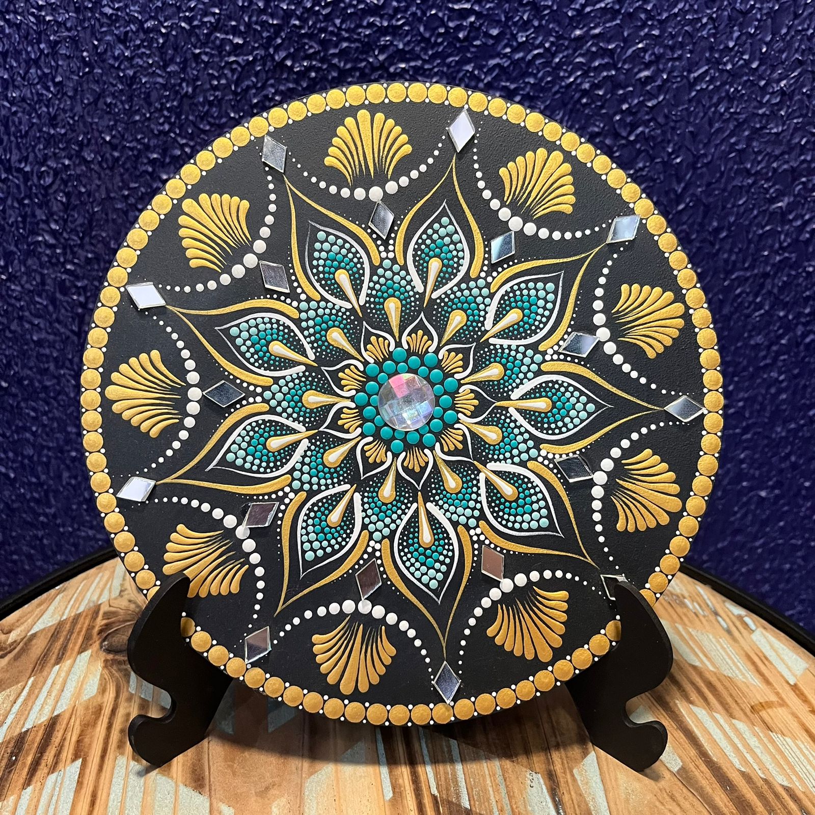 No centro da mandala contém o cristal multifacetado, para afastar as energias negativas e trazer as energias positivas.