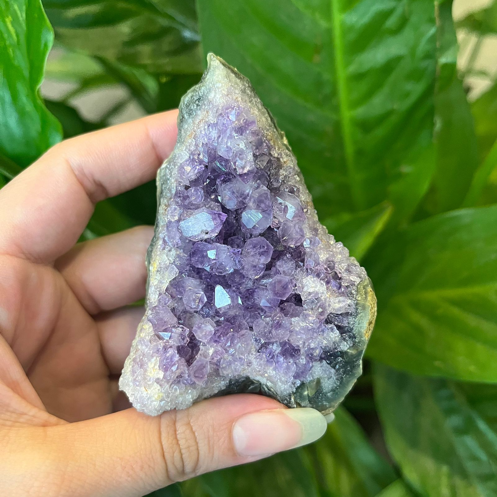 A Ametista é uma pedra de transmutação de pensamentos e energia, transforma todas as energias negativas em energias positivas.Também é a pedra da espiritualidade e da intuição. É o cristal de maior eficácia na meditação, facilitando a conexão com seu Eu Superior. Transmite paz, espiritualidade, elimina o estresse e inspira a cura e intuição.