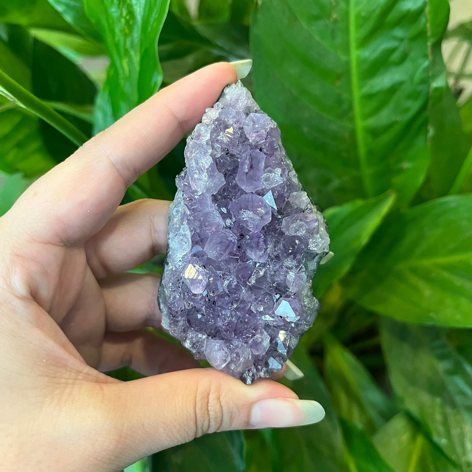 A Ametista é uma pedra de transmutação de pensamentos e energia, transforma todas as energias negativas em energias positivas.Também é a pedra da espiritualidade e da intuição. É o cristal de maior eficácia na meditação, facilitando a conexão com seu Eu Superior. Transmite paz, espiritualidade, elimina o estresse e inspira a cura e intuição.