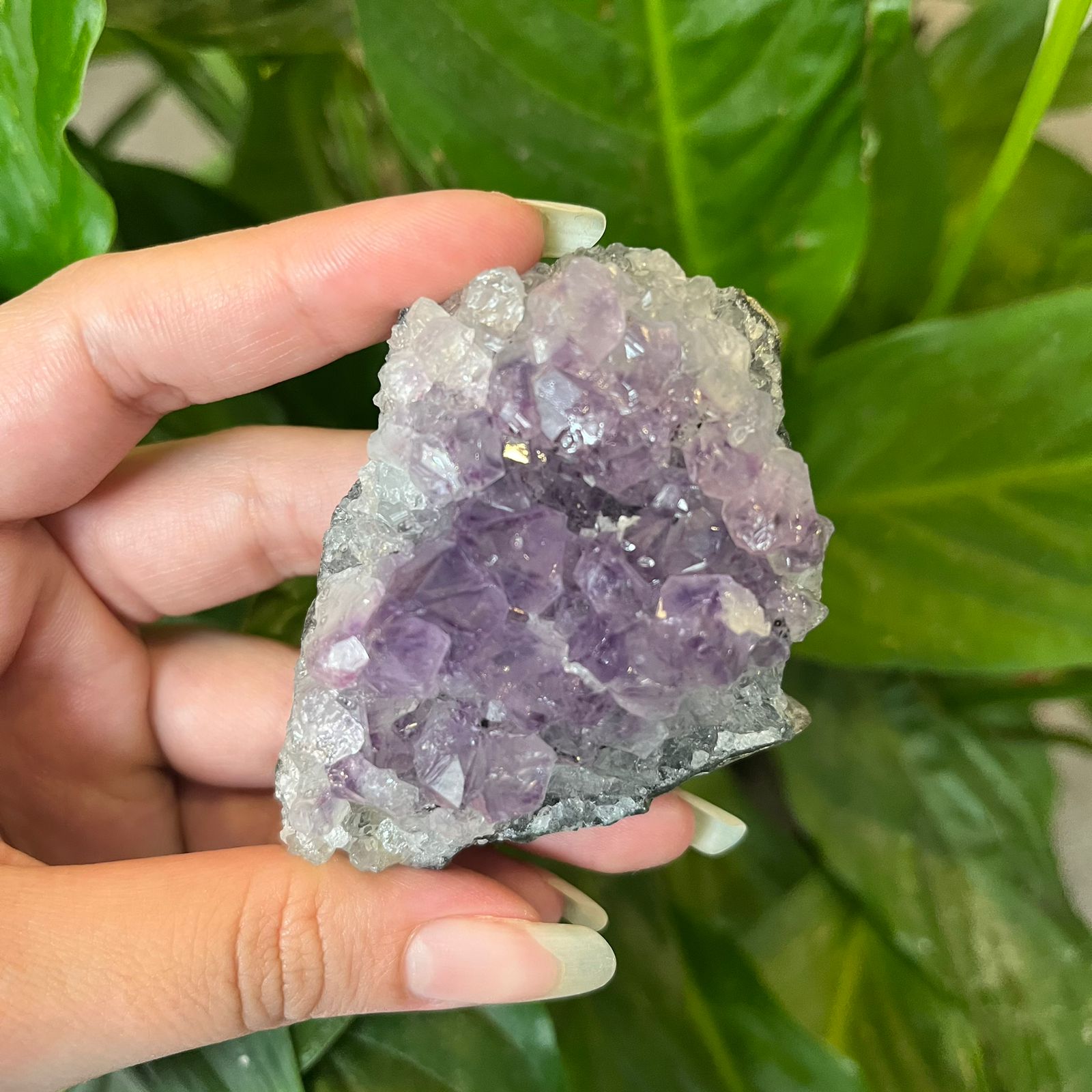 A Ametista é uma pedra de transmutação de pensamentos e energia, transforma todas as energias negativas em energias positivas.Também é a pedra da espiritualidade e da intuição. É o cristal de maior eficácia na meditação, facilitando a conexão com seu Eu Superior. Transmite paz, espiritualidade, elimina o estresse e inspira a cura e intuição.