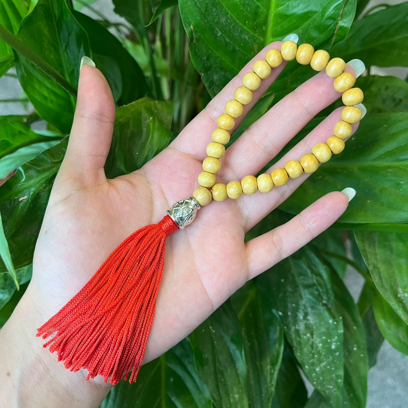 COMO USAR: Já com a postura e a respiração controladas e relaxadas, o meditante segura seu japamala com uma das mãos. Apoiando-o em seu dedo médio, usa o polegar para puxar cada uma das 108 contas; cada vez que o mantra ou o nome da divindade é mentalizado ou pronunciado, puxa-se uma conta. O dedo indicador não deve tocar as contas do japamala, pois representa o ego e está associado ao pensamento - e o objetivo da meditação é justamente o de suspender a ação do pensamento. O meru não deve ser contado como as demais 108 contas, porque é a representação de Brahman, do absoluto, de nosso aspecto eterno e imutável e por isso está fora da roda do samsara, entretanto é o meru que marca o início e o final do ciclo do japamala. Terminando a passagem pelas 108 contas, caso o praticante queira continuar e fazer mais uma volta, não deve passar por cima do meru; em vez disso, deve virar o cordão e continuar a fazer o japa na direção inversa. Para surtir efeito, a prática da meditação deve ser frequente