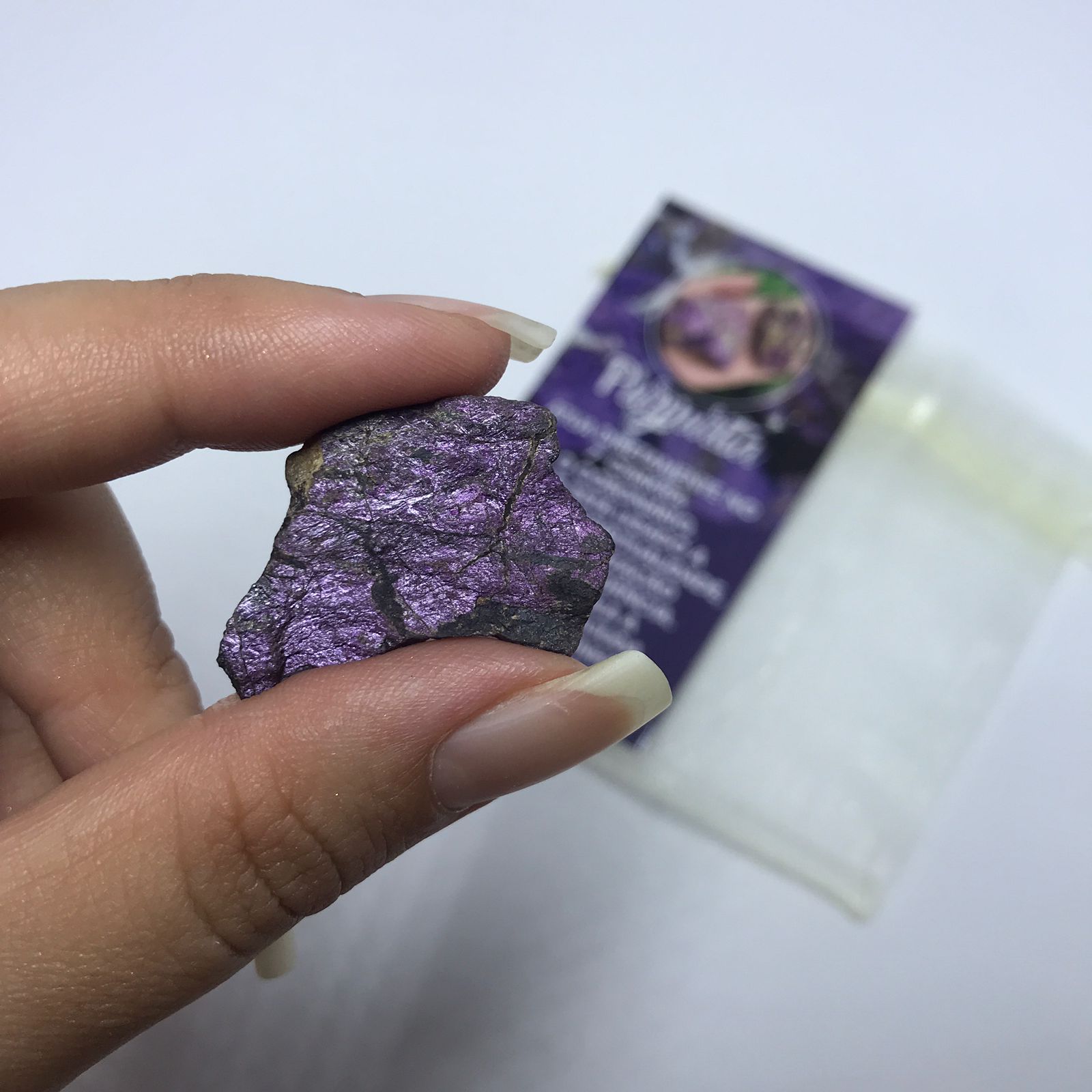 A Purpurita tem o poder de abrir os nossos chakras superiores, nossos pontos de força responsáveis pela nossa conexão com a nossa essência espiritual, estimulando nossa evolução. Boa para períodos de transição. Estimula uma comunicação com mais segurança e confiança, já que permite um fluxo entre seus pensamentos e sua fala.