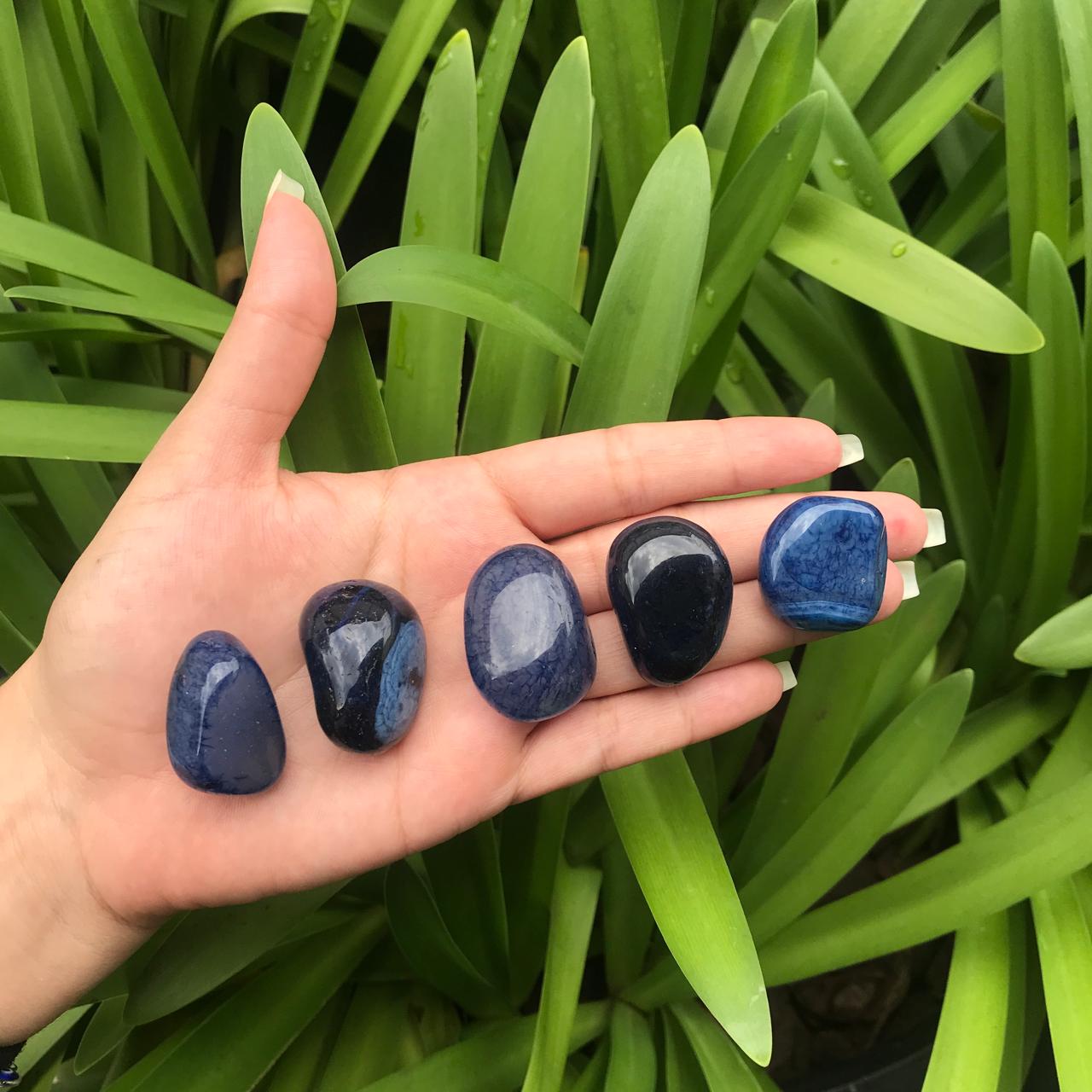 A Ágata Azul é uma pedra que transmite calma, harmonia, tranquilidade e felicidade. Além de trazer equilíbrio emocional, cura espiritual ou elevação vibracional. Esta pedra tem o incrível poder de purificar profundamente nossas emoções, dissolvendo traumas e liberando todas as energias negativas.