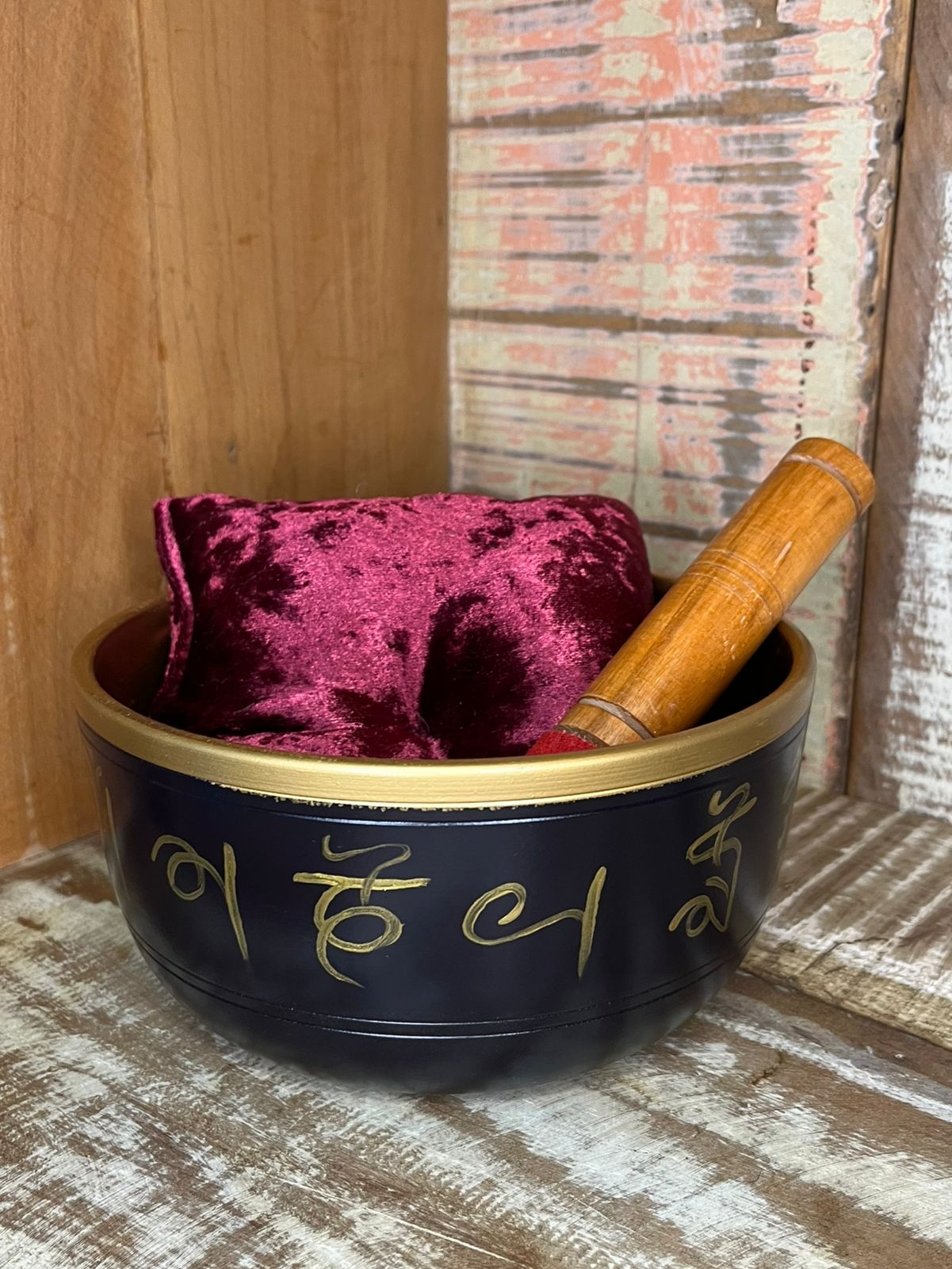 Acessório de meditação tradicional da cultura tibetana. Seu som relaxa, equilibra e auxilia no processo de cura. A vibração das tigelas tibetanas também atua sobre a mente, levando a estados mentais de relaxamento e permitindo um diálogo direto com as impressões e informações que habitam o Inconsciente. As tigelas podem ser usadas para produzir um som de gongo, com o impacto do golpe do bastão de madeira em seu corpo, ou uma vibração constante e linear, através da fricção do bastão ao longo da borda externa da tigela em movimentos circulares contínuos e uniformes. É um instrumento que ajuda a aliviar os efeitos do stress e da ansiedade.
