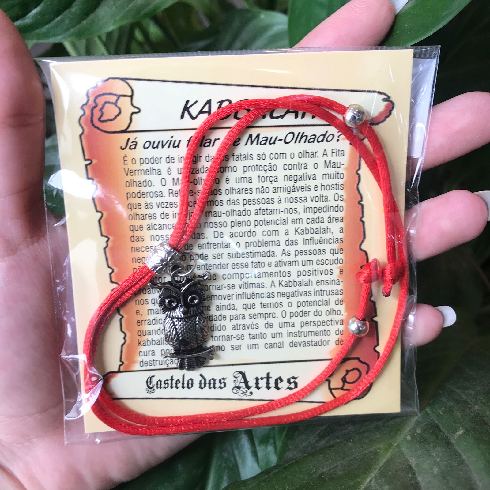 Pulseira Kabbalah Com Pingente Coruja - Proteção e Sorte